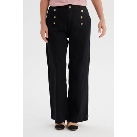 Jeans Mujer Flare Botones Delantero Negro