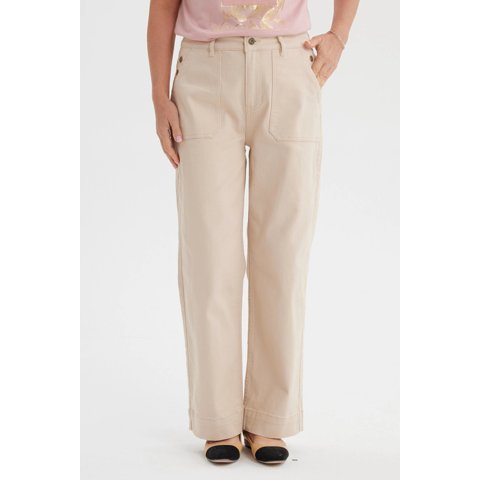Jeans Mujer Clásico Calce Recto Beige Claro
