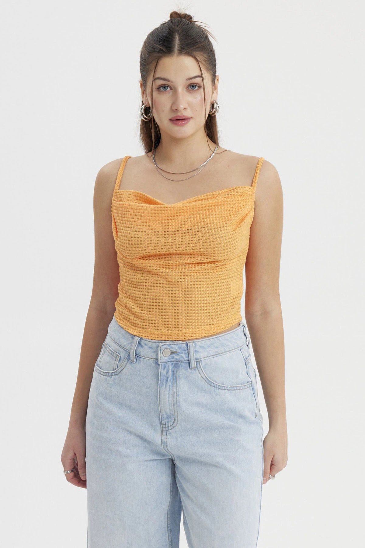 Polera Mujer Escote Drapeado Naranjo