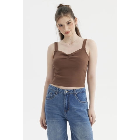 Fashionspark - Polera Mujer Escote Corazón Y Recogido Café Oscuro | Lider Electrohogar