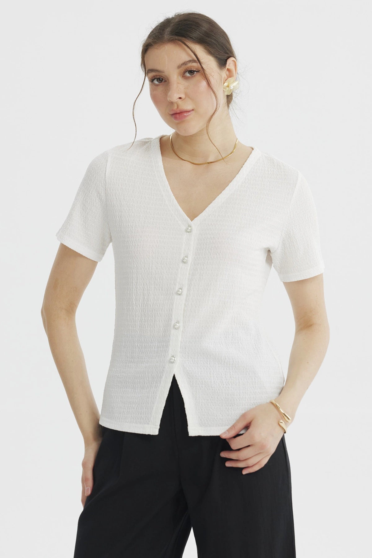 Fashionspark - Polera Mujer Botones Perlas Crudo | Lider Electrohogar