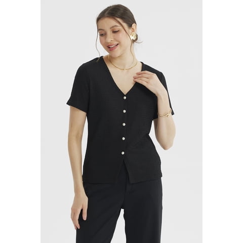Fashionspark - Polera Mujer Botones Perlas Negro | Lider Electrohogar