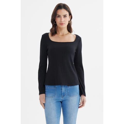 Fashionspark - Polera Mujer Escote Bardot Rib Negro | Lider Electrohogar