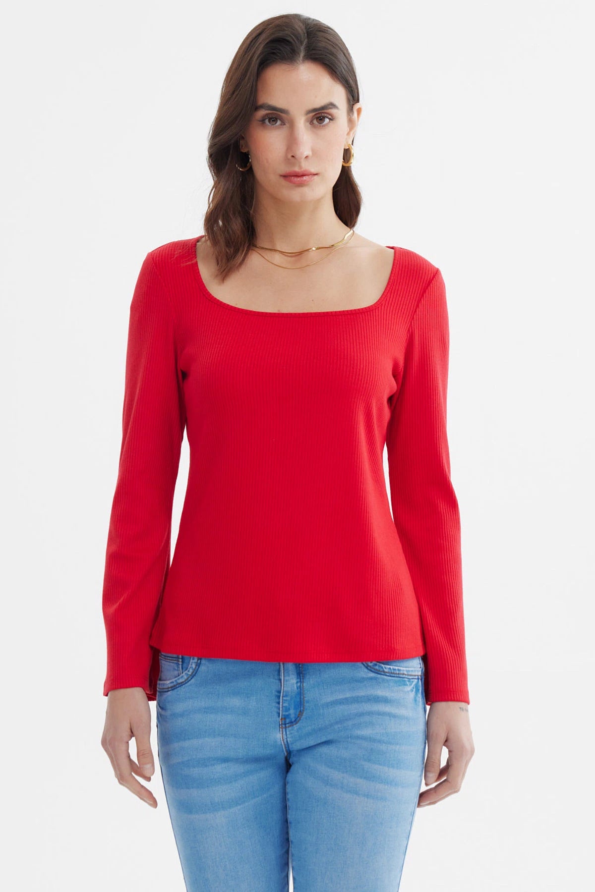 Fashionspark - Polera Mujer Rib Abertura Puño Rojo