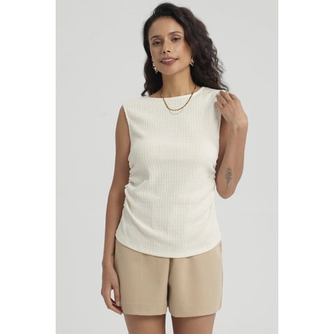 Polera Mujer Recogido Abertura Crema
