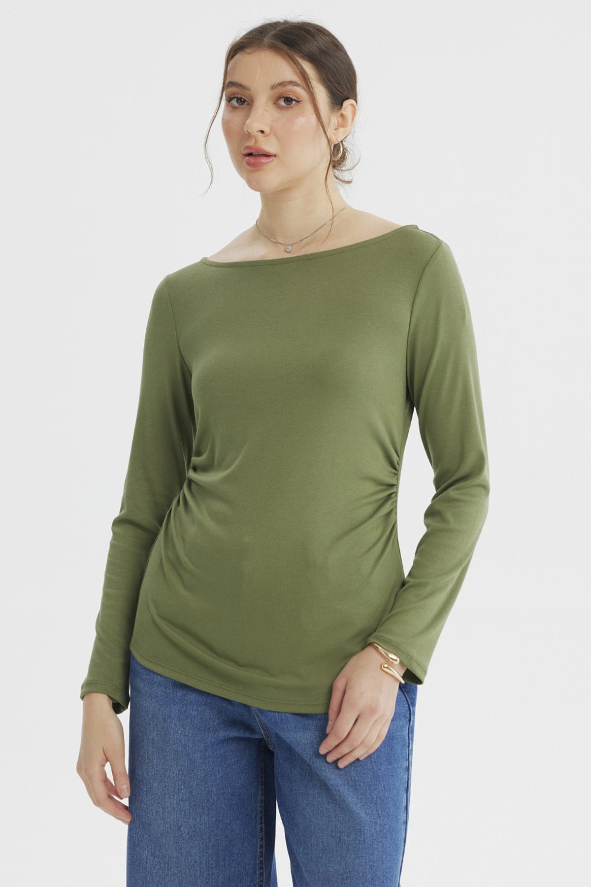 Fashionspark - Polera Mujer Rib Abertura Puño Verde Olivo