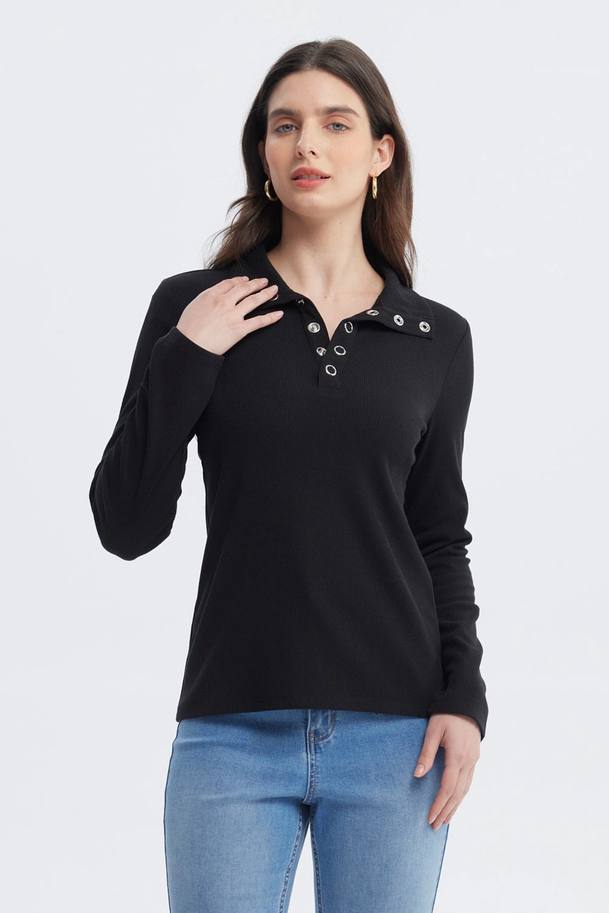 Fashionspark - Polera Mujer Con Botón Negro