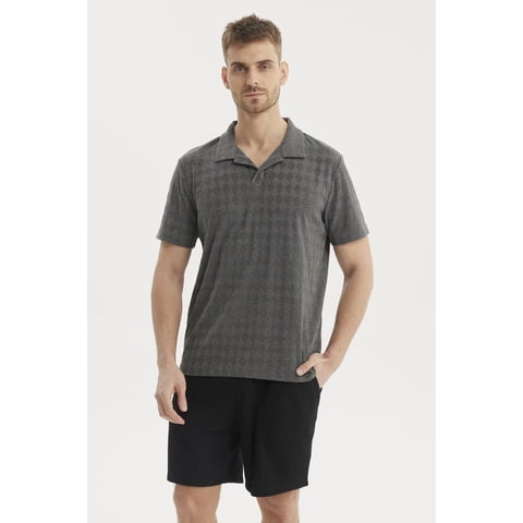 Fashionspark - Polera Hombre Cuello Camisero Gris Oscuro