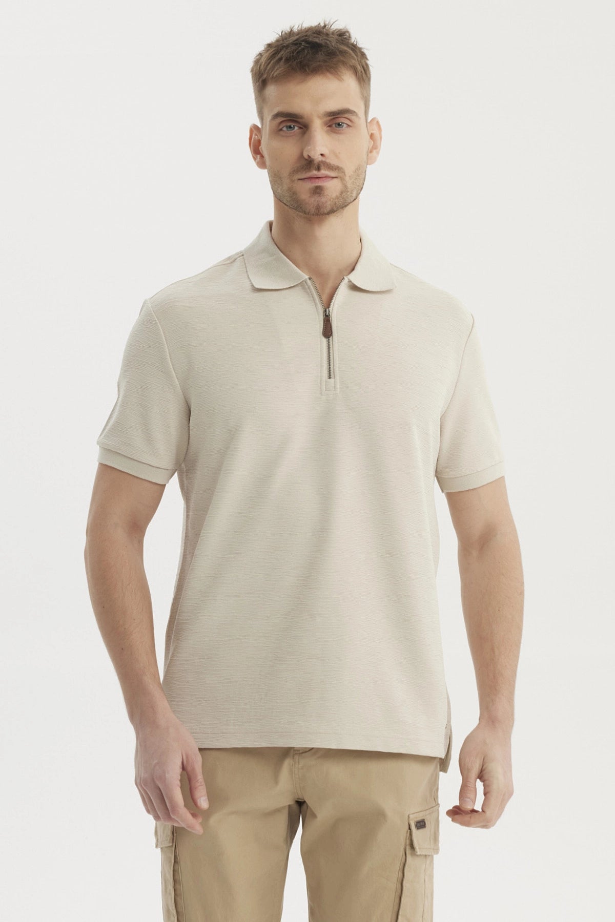 Fashionspark - Polera Hombre Textura Cierre Polo Beige