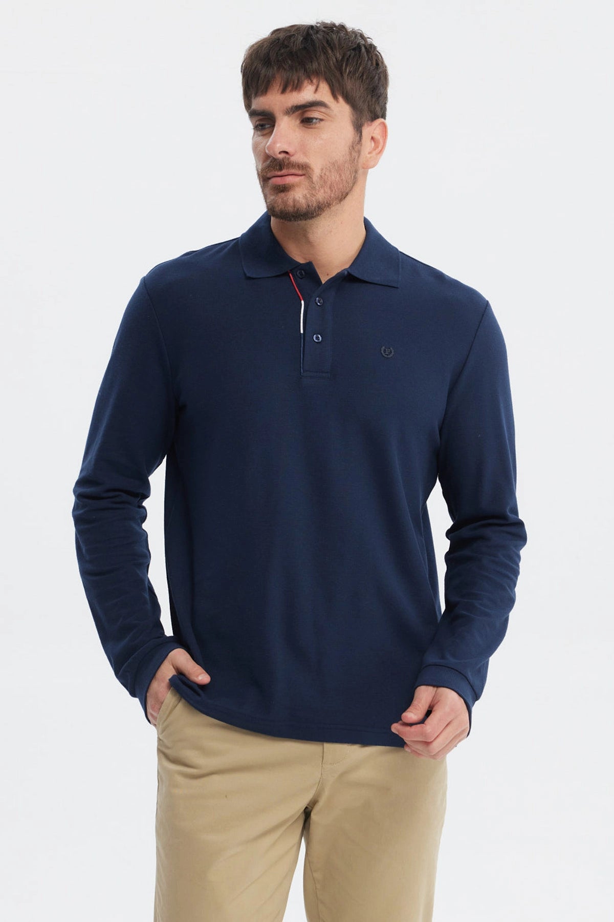 Fashionspark - Polera Hombre Botón Azul Marino