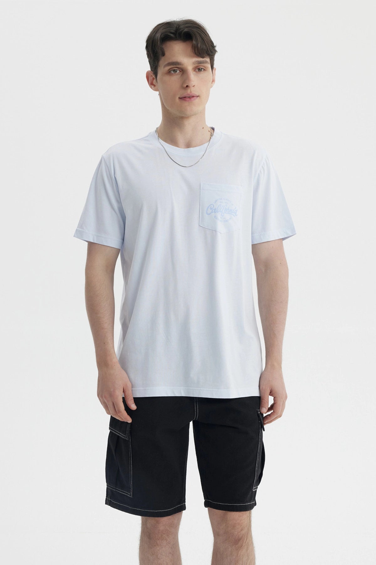 Polera Hombre Con Bolsillo Print Celeste Claro