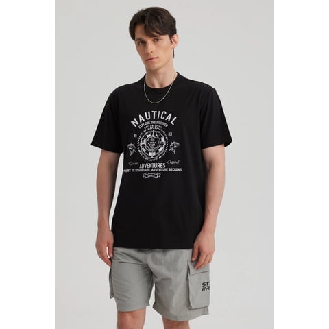 Fashionspark - Polera Hombre Regular Fit Print College Negro