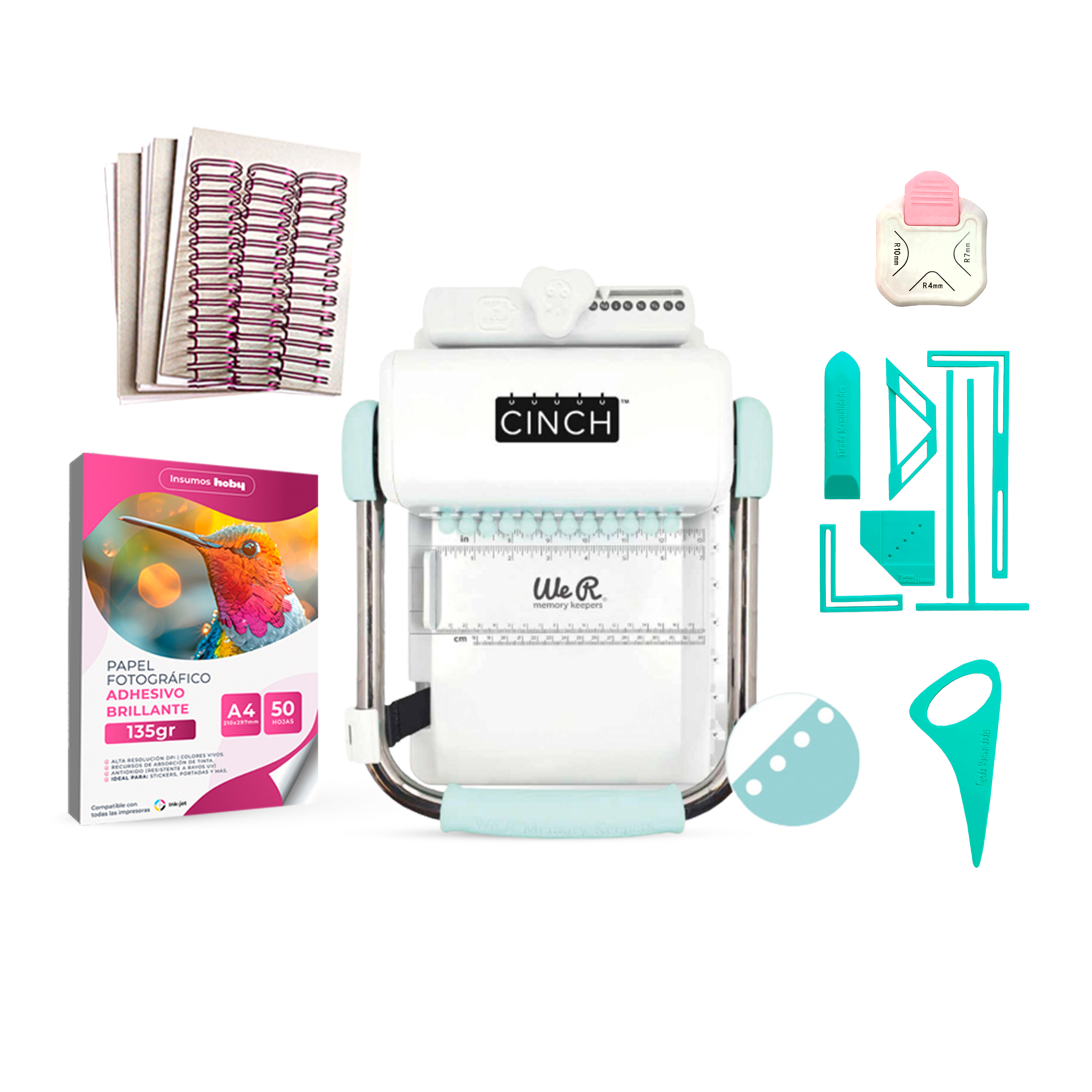 Encuadernadora cinch menta + insumos