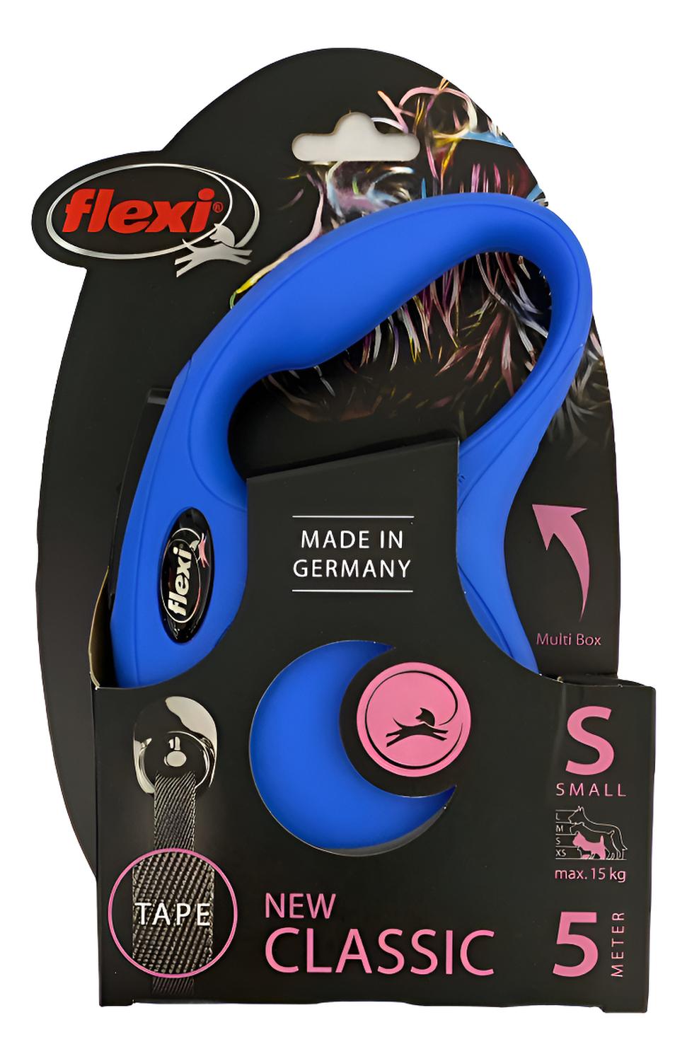 Correa retráctil flexi classic talla s incluye: 1 correa retráctil (color a elección). características: diseño de cinta con 5m de largo. ancho de la cinta: 1cm retráctil. con botón de seguridad. ideal para mascotas cuyo peso sea menor a 15kg. se le puede adaptar el multi box y led lighting system (no incluidos). flexi new classic es una correa para perros con sistema retráctil y de fabricación alemana. su mango suave, tiene una cinta de nylon de 5 metros de largo diseñado para perros de hasta 15kg. para que paseen tranquilamente, sin tirones. este tipo de correa extensible, permite que tu perro se desplace y olfatee libremente a tu alrededor. la correa extensible de flexi new classic también posee un botón que al presionar pausa la función retráctil y una perilla que bloquea totalmente el retráctil. en la parte inicial está recubierto por cinta para seguridad de tu perro función reflectante.
