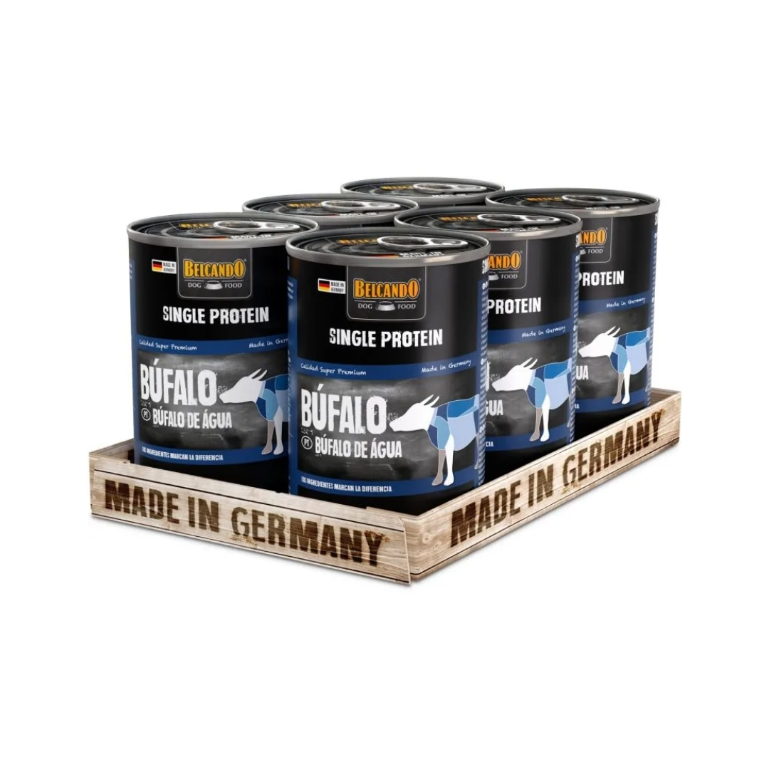 Latas belcando adulto monoproteína de búfalo de agua pureza animal, sabor salvaje