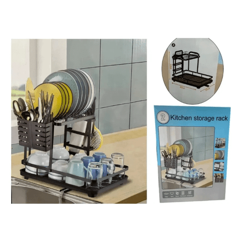Genérico - Secador Escurridor De Platos 2 Niveles Color Negro Metalico