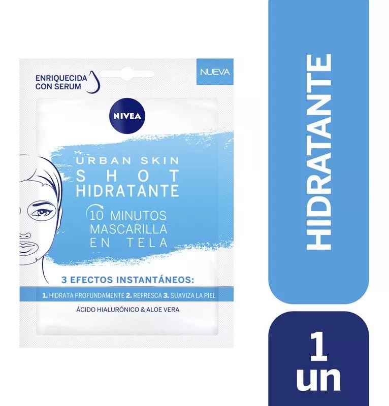 Experimenta una hidratación intensa y duradera con la máscara facial nivea urban skin shot hidratante. diseñada especialmente para adaptarse a todo tipo de piel, esta máscara facial brinda un cuidado profundo y revitalizante para tu rostro. su fórmula única, desarrollada por la reconocida marca nivea, te ayudará a mantener tu piel fresca y radiante en el ajetreo de la vida urbana. al aplicarla en tu rostro, sentirás una sensación de frescura y confort, mientras sus ingredientes activos trabajan para nutrir e hidratar tu piel. no esperes más para disfrutar de los beneficios de esta máscara facial y luce un rostro saludable y lleno de vida.