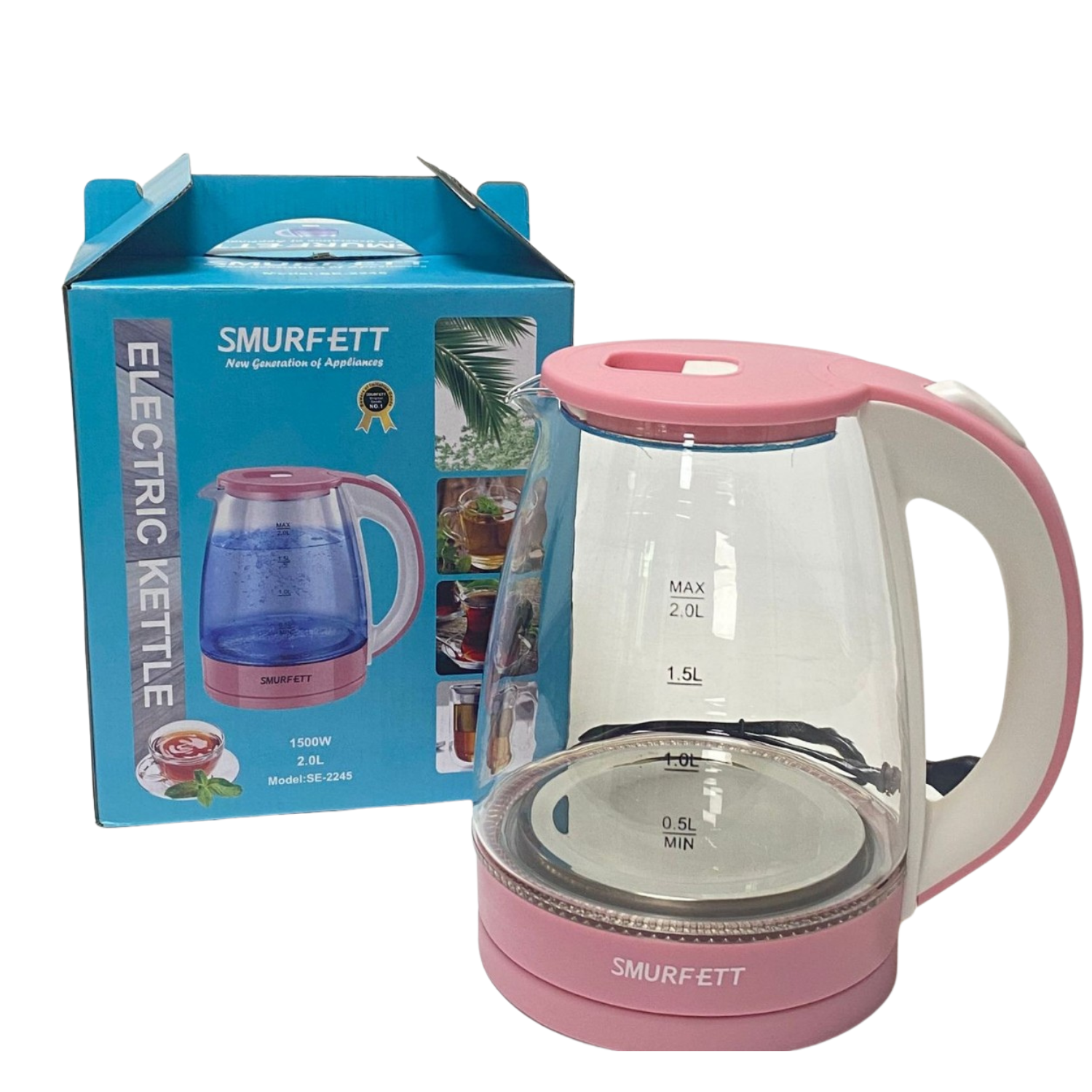 Hervidor electrico vidrio templado 2 litros agua smurfett rosa