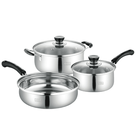 Juego De Ollas Y Sartén Batería 5 Pcs Cocina Inoxidable