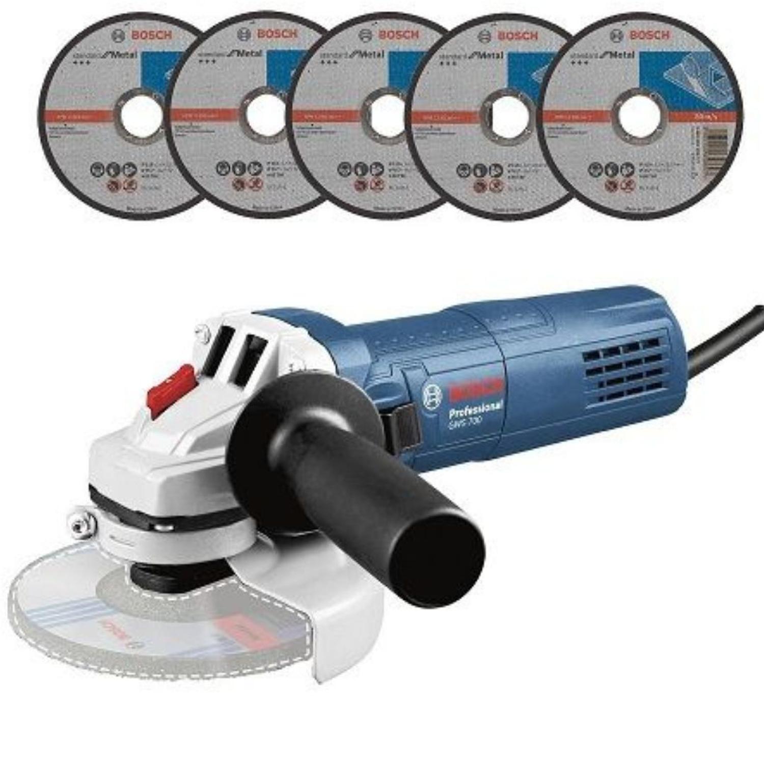 Esmeril Angular Bosch 4 1/2"" Gws 700 + 5 Discos