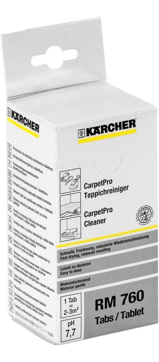 Limpiador concentrado para alfombras karcher rm760 pack de 16 tabletas, cada una se disuelve en 4 litros de agua limpiador básico de pulverización y aspiración combinadas en forma de pastillas con tecnología de encapsulación. en lámina protectora soluble en agua. sin aclarado compatible con aspiradora lava-alfombras karcher se4001 potente limpiador en pastillas para alfombras rm 760, 16 unidades. limpiador básico de pulverización y aspiración combinadas en forma de pastillas con tecnología de encapsulación. en pastilla soluble en agua. sin aclarado. cantidad de unidades: 3 peso con embalaje incluido (kg): 0,3 dimensiones (la. × an. × al.) (mm): 72 x 61 x 141