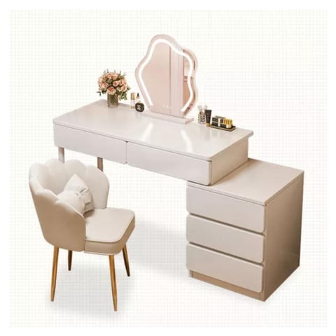 Tecnofonia - Tocador Elegante Con Espejo Y Taburete.