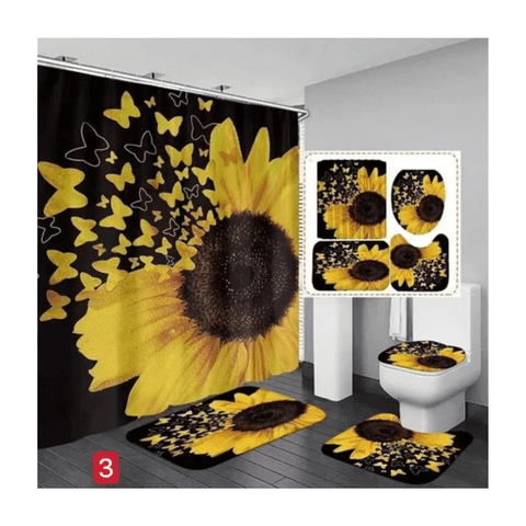 Genérico - Cortina De Ducha Con Set De Alfombra Tapete