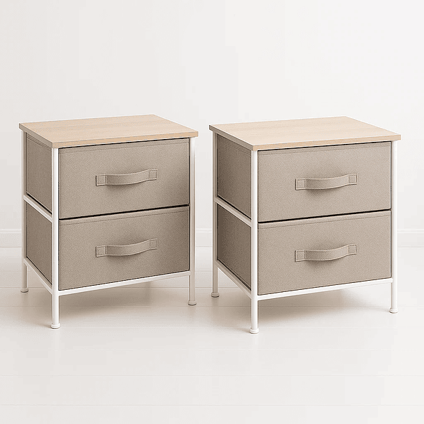 Pack de 2 Veladores con Cajones de Tela - Gris