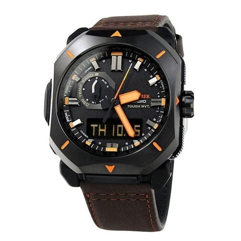 Casio - Reloj Protrek Análogo Digital Correa De Cuero Marrón Esfera Gris Tough Solar Prw 6900Yl 5 100M Para Hombre