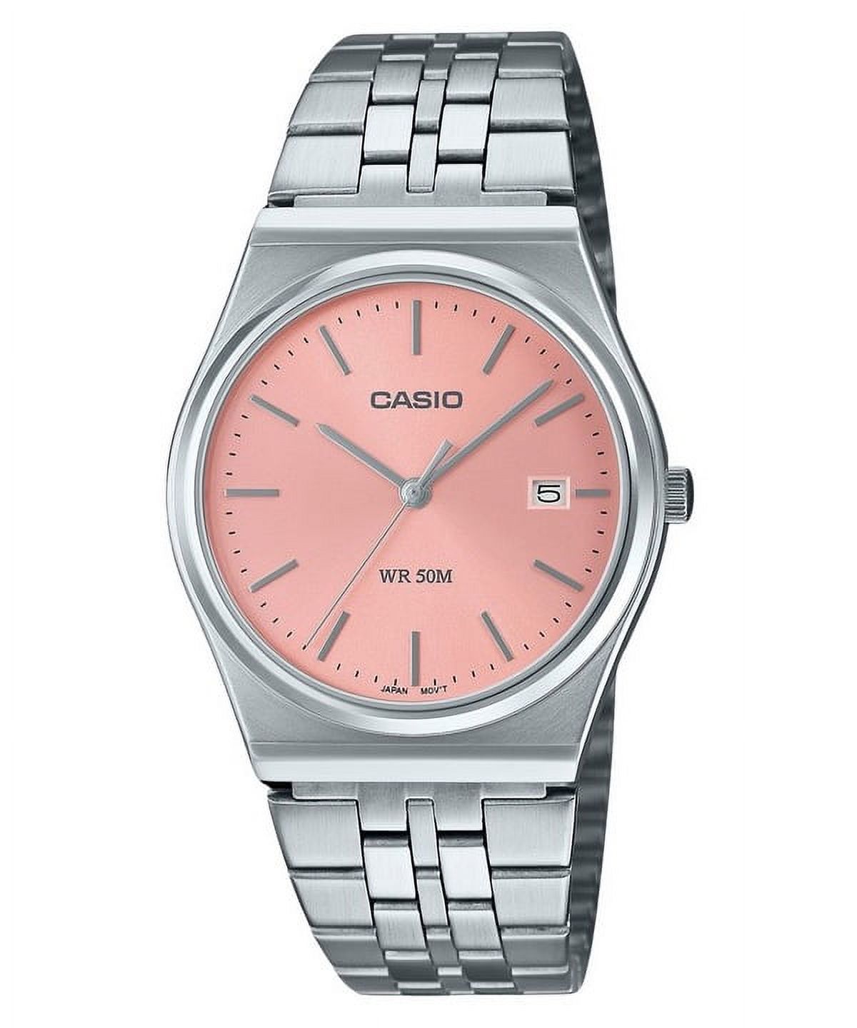 Casio standard analog stainless steel pink dial quartz mtp-b145d-4av mtpb145d-4 unisex watch the casio mtp-b145d-4av captures attention with its soft pink dial, adding a stylish and modern twist to a classic design. its stainless steel case and bracelet offer durability and a polished look, perfect for any occasion. powered by precise quartz movement, this watch ensures accurate timekeeping, while its minimalist design makes it versatile for both casual and formal settings. a perfect blend of elegance and everyday practicality, ideal for the fashion-forward wearer.