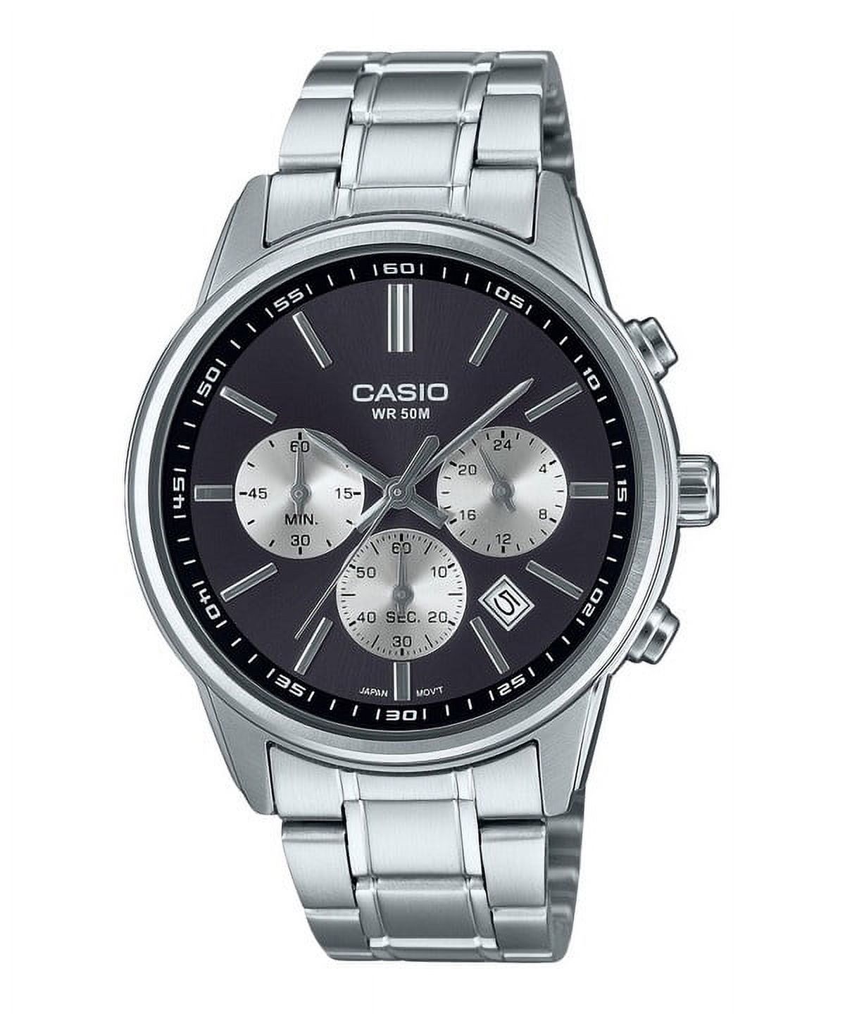 Casio - Reloj Standard Cronógrafo Análogo Acero Inoxidable Esfera Negra Cuarzo Mtp-E510D-1A1V Para Hombre