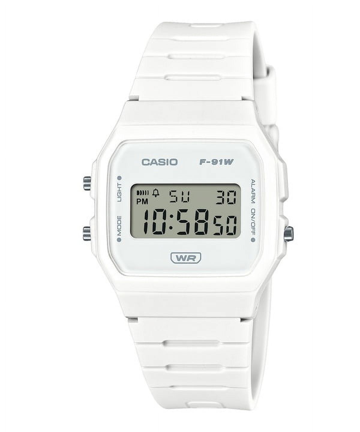 Casio pop digital bio-based white resin strap quartz f-91wb-7a f91wb-7 100m unisex watch the casio f-91wb-7a is a modern twist on a classic, featuring a durable bio-based white resin strap that's both eco-friendly and stylish. its 100-meter water resistance ensures it's as practical as it is trendy, while the digital display offers clear and easy readability. powered by reliable quartz movement, this watch combines convenience with sustainability. perfect for the eco-conscious who want a reliable timepiece for everyday wear, the f-91wb-7a balances functionality and fashion effortlessly.
