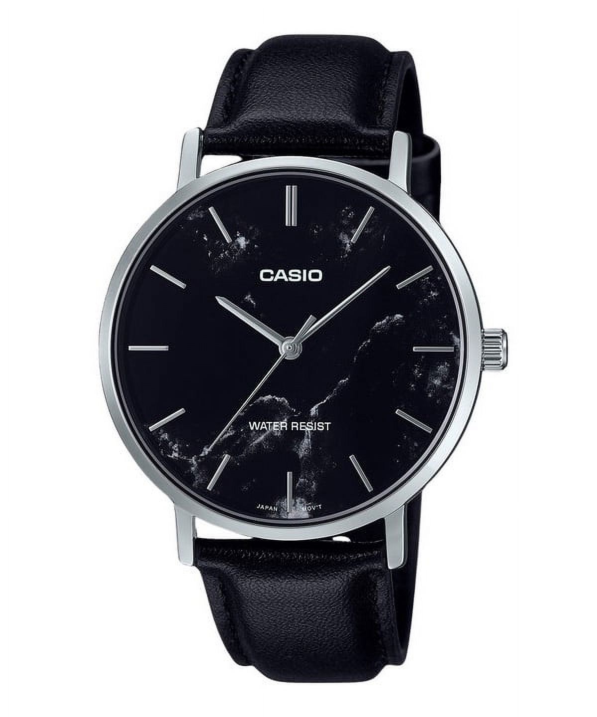 Reloj Casio Standard Analog Black Leather Strap Marble Inspired Black Dial Quartz Mtp-Vt01Lm-1A Men'S Watch | Lider Electrohogar