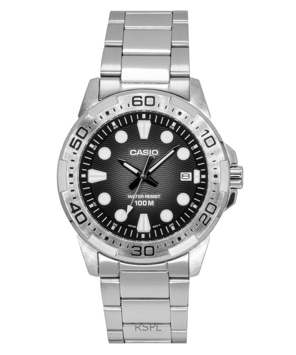 Reloj analógico casio mtd-140d-1av con caja y brazalete de acero inoxidable, esfera negra y resistencia al agua de 100 metros para hombre.