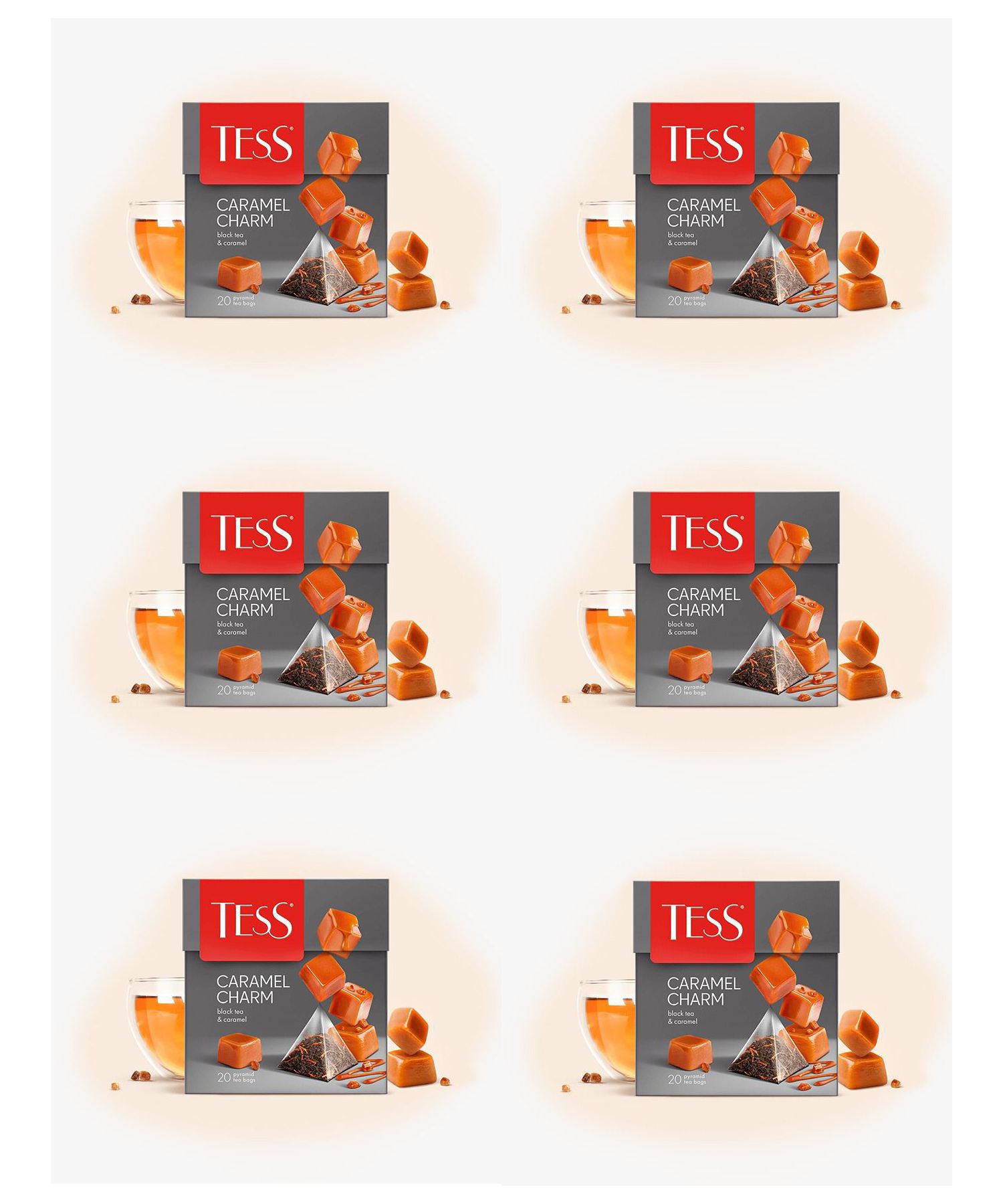 Pack 6 x té tess caramel charm (120 piramides)