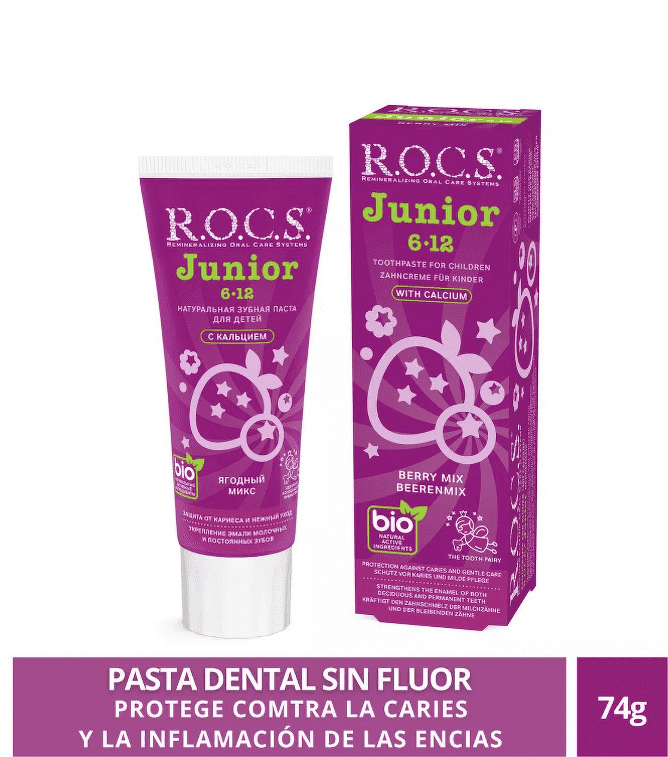 Pasta Dental Rocs Junior Berry Mix 74G Sin Fluor | Lider Electrohogar