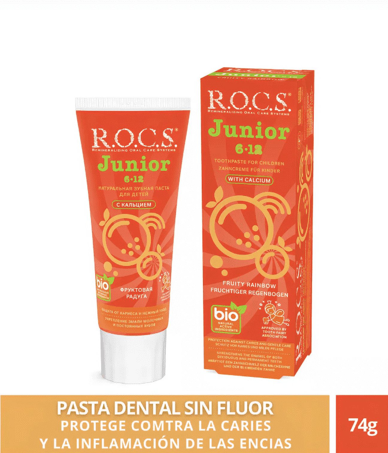 Pasta Dental Rocs Junior Fruity Rainbow 74G Sin Fluor | Lider Electrohogar