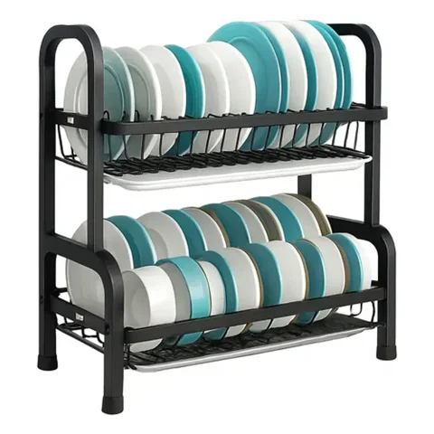 Genérico - Escurridor De Platos Estante Secaplatos 2 Niveles Negro