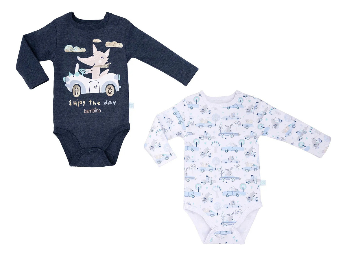Bambino - Set 2 Bodys Manga Larga Azul Zorro Niño 0 - 3 Meses