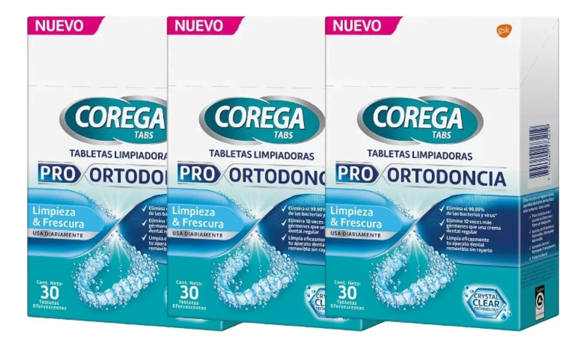 Pack Tabletas Limpiadoras Pro Ortodoncia 30U Corega X3 | Lider Electrohogar