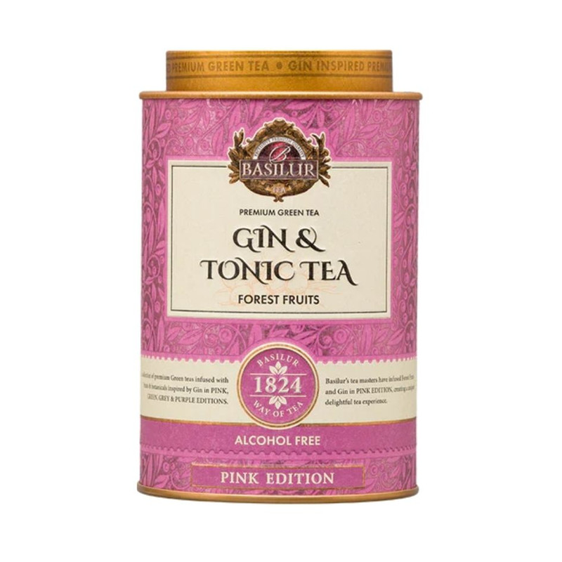 Esta infusión excepcional combina el sabor distintivo del gin tonic con una mezcla de frutas rojas, creando una bebida única y sin alcohol. con notas de hibisco, frambuesa y otras bayas, este té es ideal para disfrutar en cualquier momento del día.