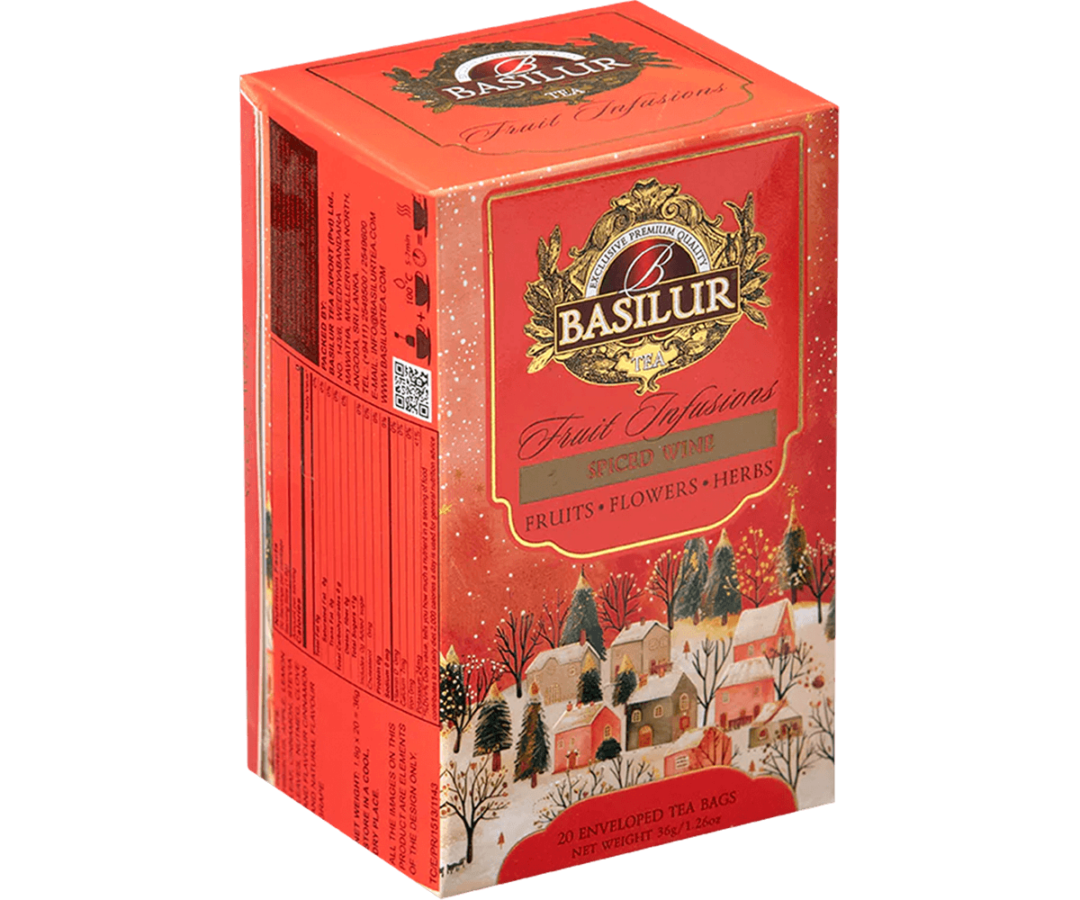 Té basilur vino especiado: brindis sin cafeína. combina manzana y uvas con canela, nuez moscada y clavo. base para té de invierno.