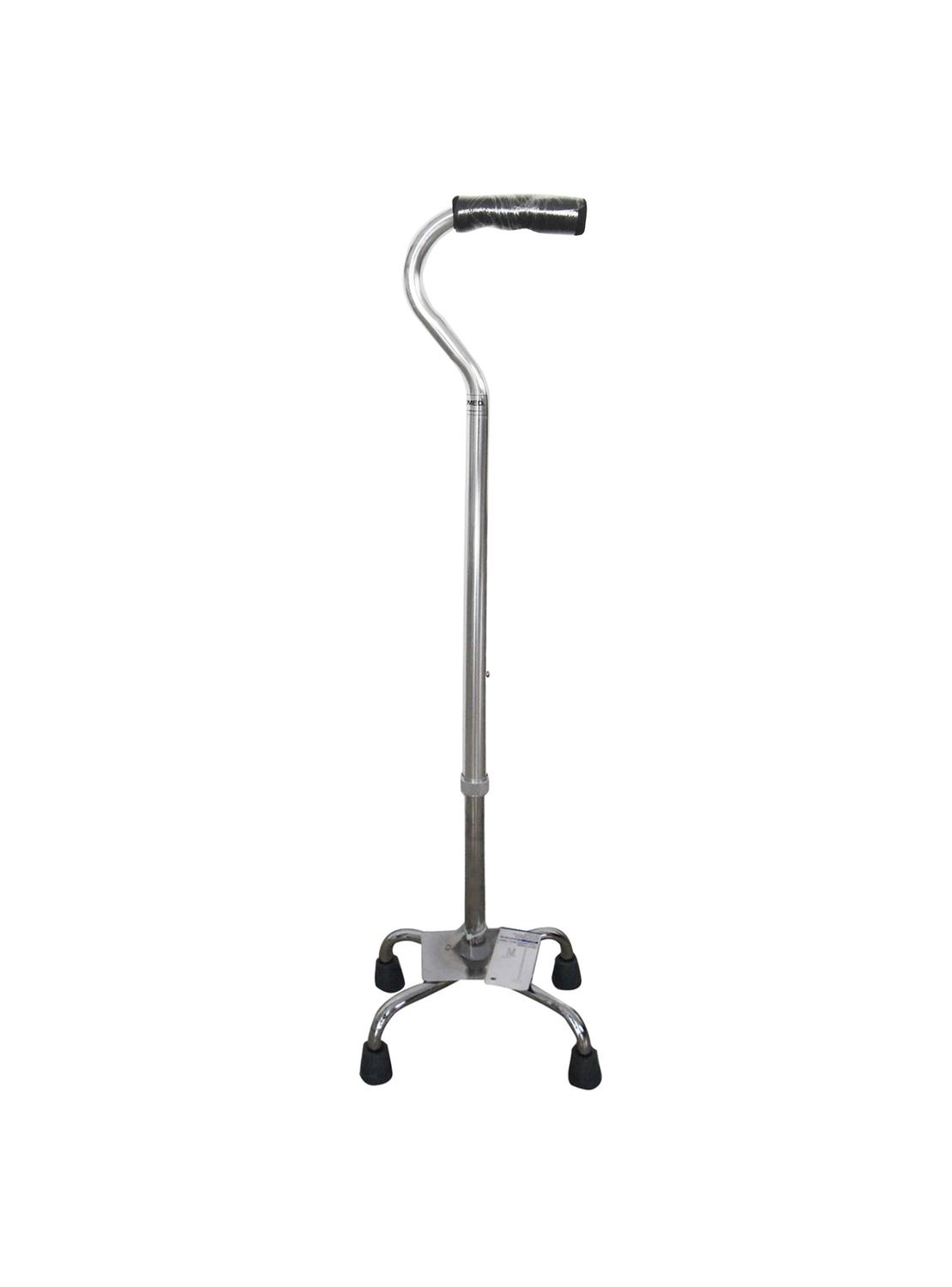El bastón de cuatro patas está diseñado para brindar asistencia al caminar a pacientes con limitaciones en las extremidades inferiores. su diseño con cuatro apoyos proporciona una estabilidad excepcional, ofreciendo mayor seguridad y confianza durante el desplazamiento. gracias a su superficie de apoyo ampliada, garantiza una base sólida y un soporte firme. está fabricado con estructura de acero esmaltado, lo que asegura resistencia y durabilidad, e incorpora una empuñadura de plástico de alta resistencia para un agarre cómodo y seguro. cuenta con cuatro topes de goma antideslizante que mejoran la adherencia al suelo. su altura regulable permite adaptarse a diferentes usuarios y dispone de un seguro especial para una fijación firme de la altura seleccionada. características técnicas - material: acero esmaltado - empuñadura: plástico de alta resistencia - base: 32 x 23 cm - topes: 4 bases de goma antideslizante - sistema de seguridad: seguro especial para fijación de altura - color: gris cromado - peso: 2,4 kg