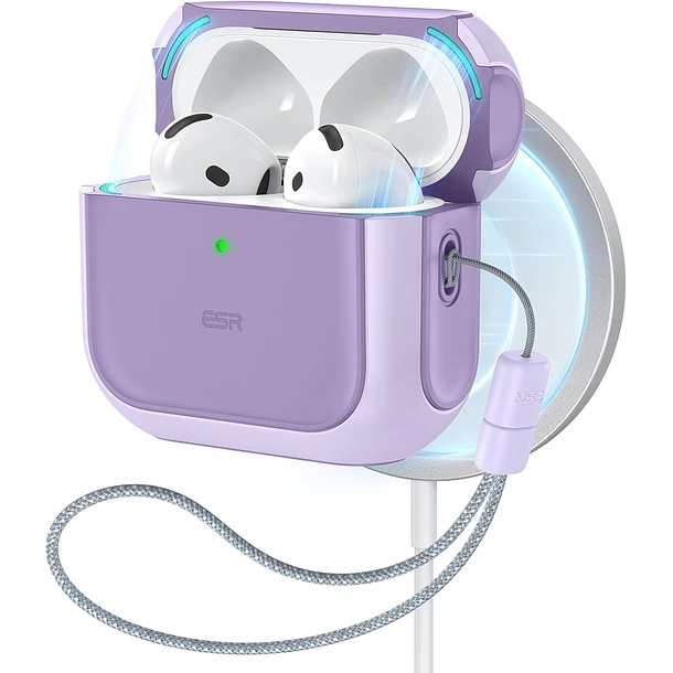 Funda Para Airpods 4 Esr Con Protección Total Contra Caídas Y Mosquetón, Color Morado