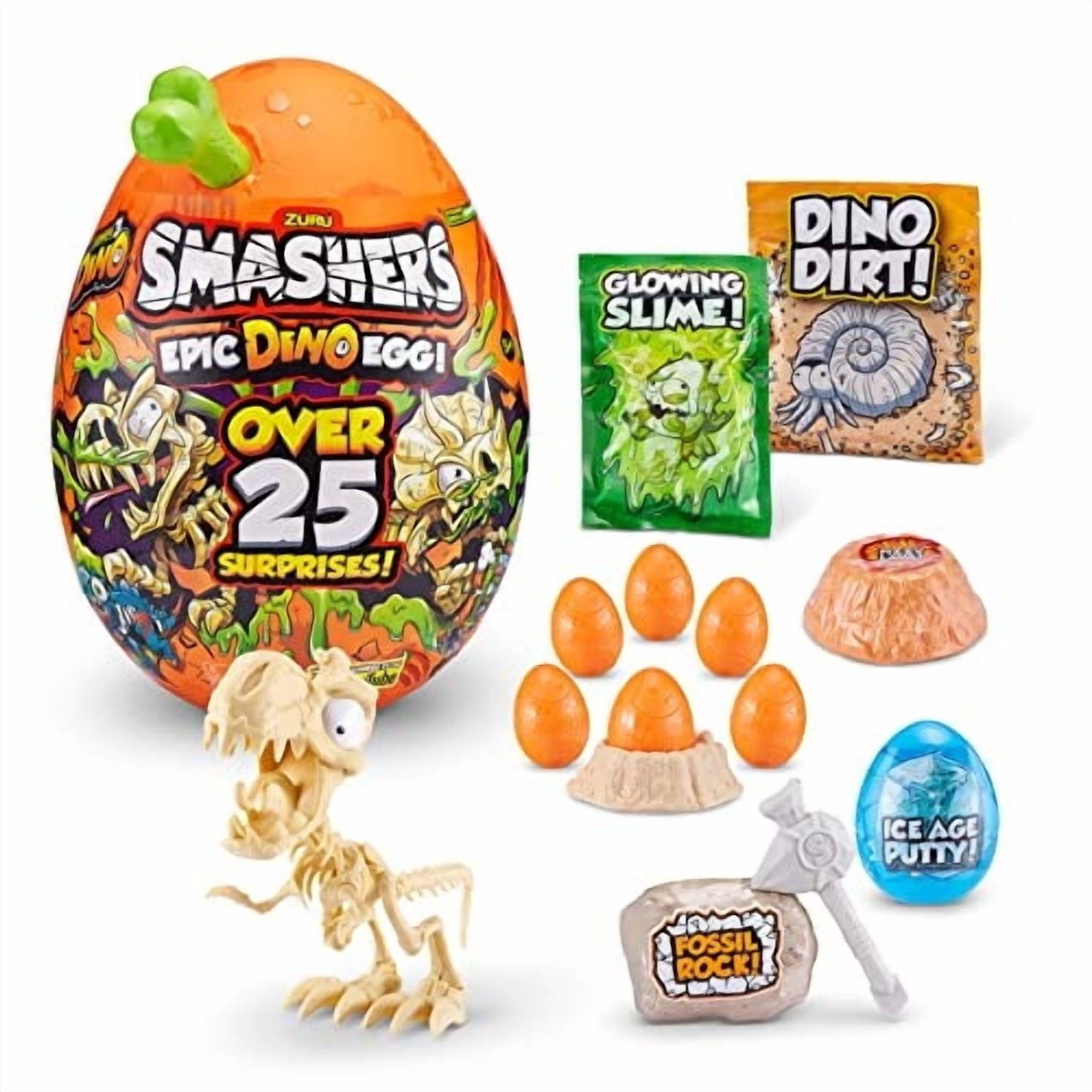 ?slime fizz y rompe tu camino a traves de mas de 25 sorpresas en el interior para construir el exclusivo smash-o-saur dino! ?usa el mapa de scratch para excavar el huevo dino para desenterrar compuestos como la bomba de lava gaseosa y la masilla de la edad de hielo con huesos ocultos de smash-o-sa