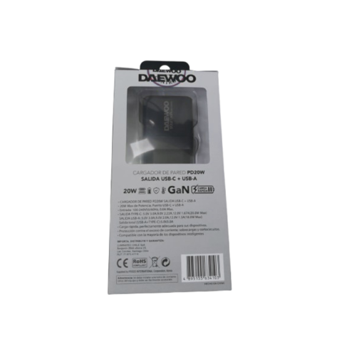 Daewoo - Cargador Usb Pd20W Di-Pd202-Eu Salida Usb-C + Usb-A | Lider Electrohogar
