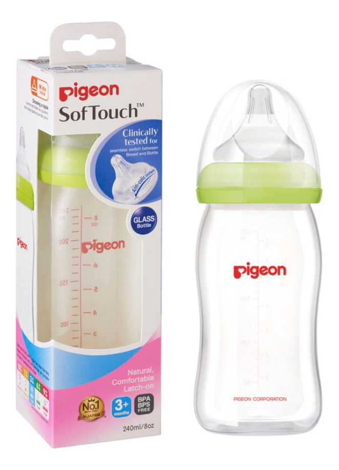 Pigeon - Mamadera Anti-Cólicos Softouch Vidrio 240 Ml | Lider Electrohogar