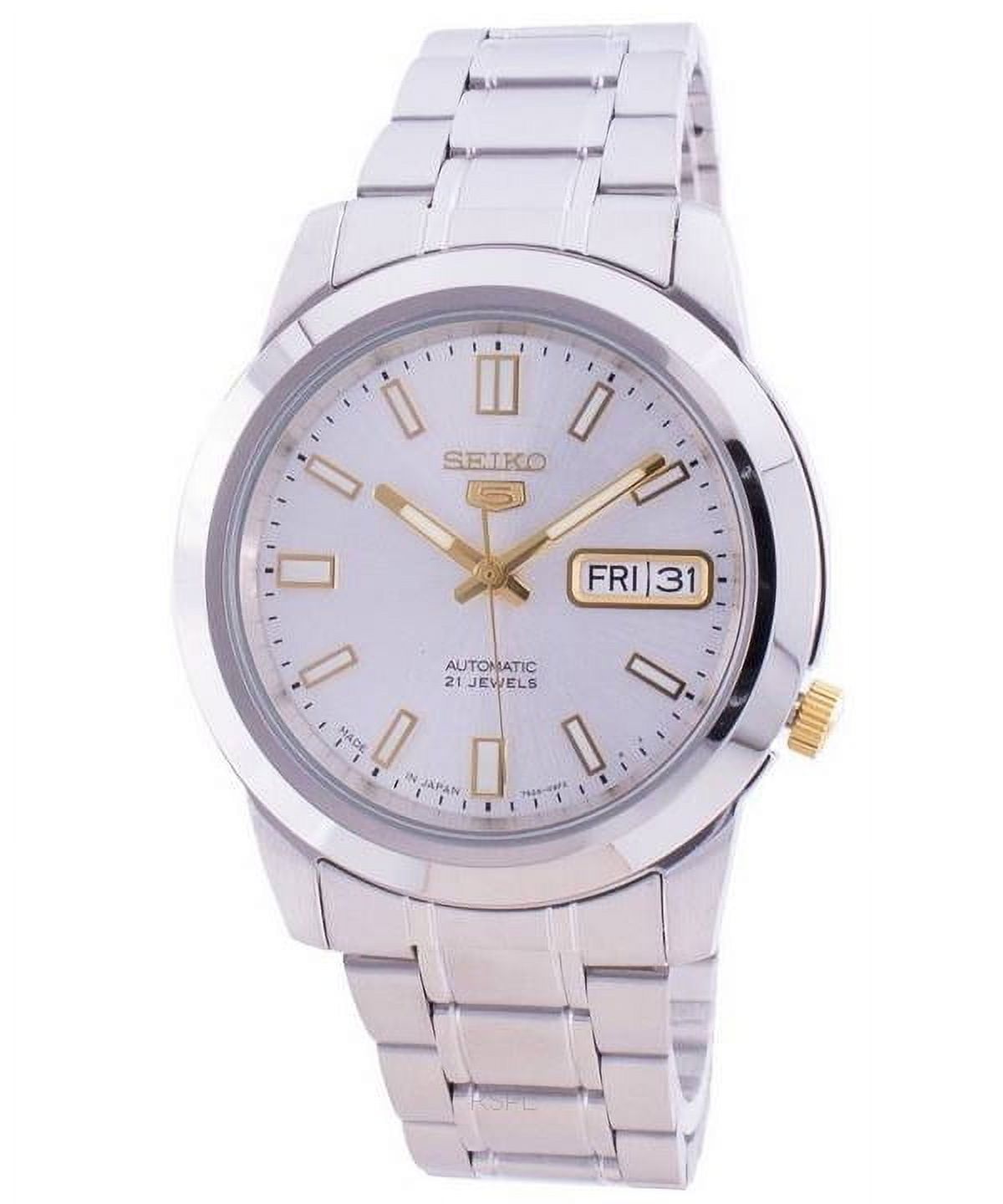 Seiko - Reloj Serie 5 Para Hombres De Acero Inoxidable Con Esfera Plateada Snkl77