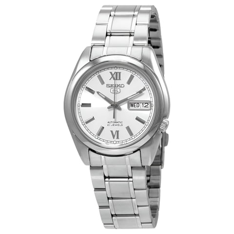 Seiko - Reloj Serie 5 Para Hombres De Acero Inoxidable Con Esfera Plateada Snkl77