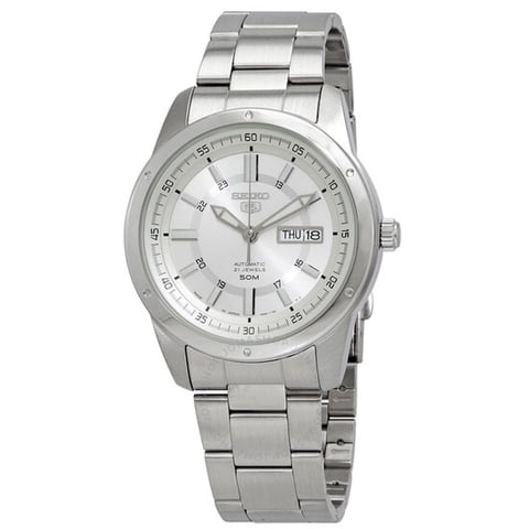 Seiko - Reloj Serie 5 Para Hombres De Acero Inoxidable Con Esfera Plateada Snkl77
